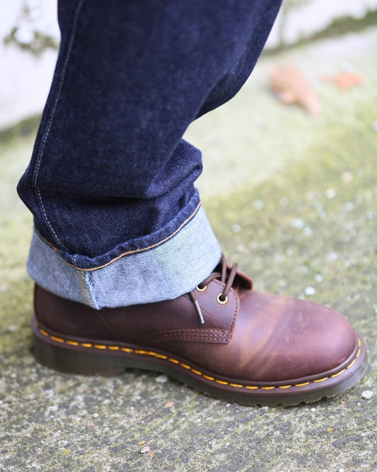 Le Dr. Martens chiudono il look con carattere e solidità.
